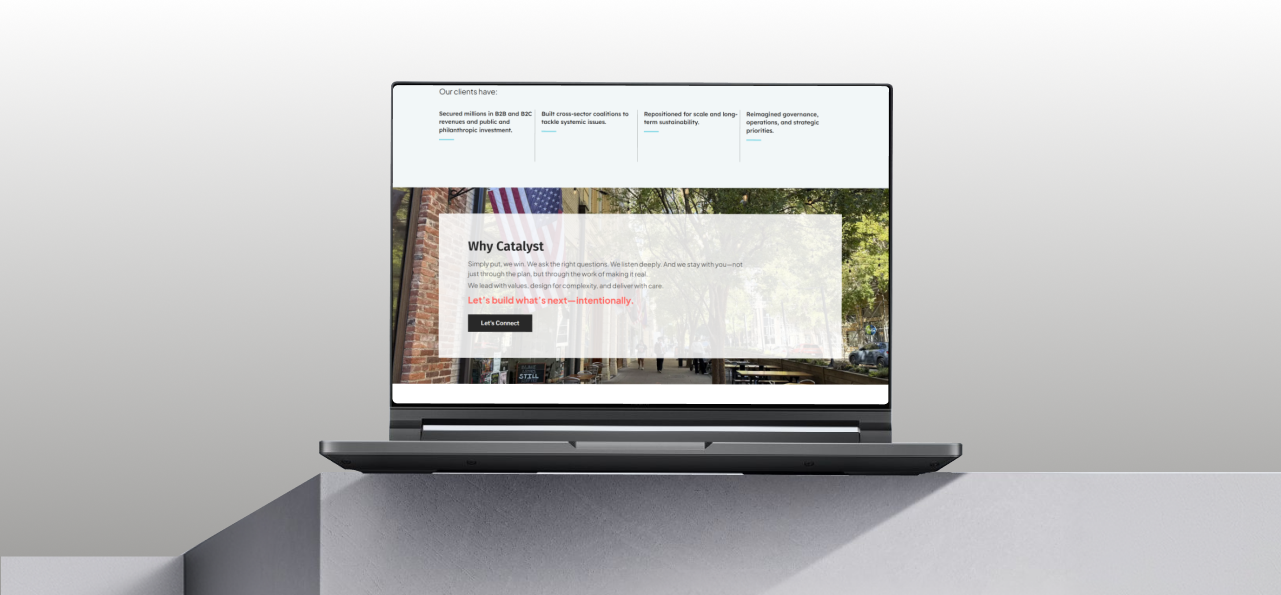 Designing a professional and approachable digital experience that reflects Catalyst’s mission-driven and human-centered ethos.